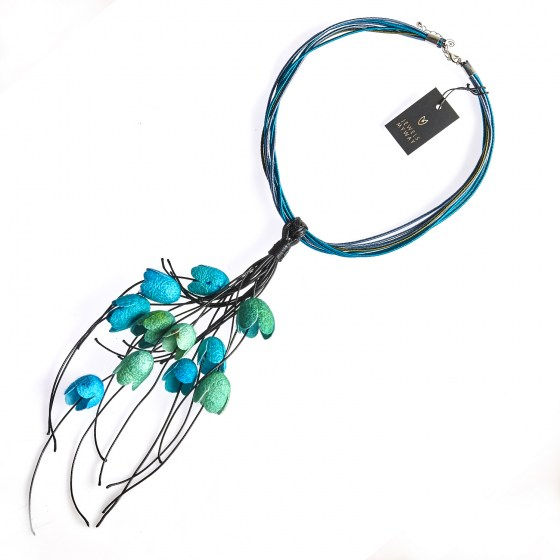 Silk cocoons cutted in the shape of flower adorn this artistic necklace One of a kind